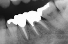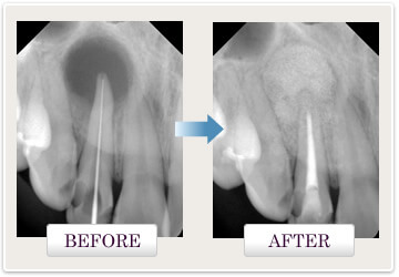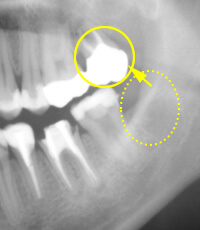主に虫歯が原因で、細菌が歯の中に通っている神経の管を通って神経自体に炎症を起こしたり、根の先に膿を作ることがあります。感染してしまった部分をきれいにとり、清掃をして、きれいになったところで細菌が増えないように薬をつめます。