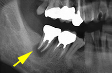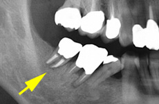 歯の根の治療だけでは治癒に期待が持てない場合には、すぐに抜歯はせずに、歯肉をあけて根の先の膿を持った部位にアプローチする、歯根端切除術というものがあります。